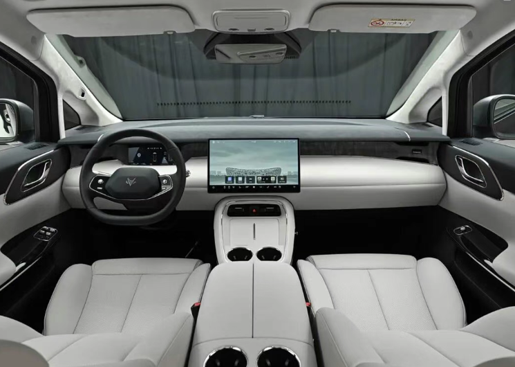 内饰方面,整体采用简洁化的设计思路,256色星河光韵氛围灯,中央配备大尺寸的悬浮式中控屏,方向盘也是两辐式样式,前部配备小仪表屏,中控台下方提供无线充电面板。