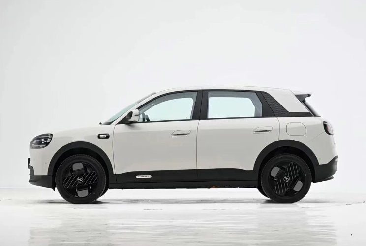 车身侧面,新车配备了半隐藏式的车门拉手,前后侧翼子板配备了黑色的轮眉,并且通过短前、后悬设计为其创造更大的内部空间,其车身尺寸长宽高分别为4195/1811/1569(1573)mm,轴距2700mm。车辆尾部依旧采用圆润的灯组设计,与前脸形成呼应。