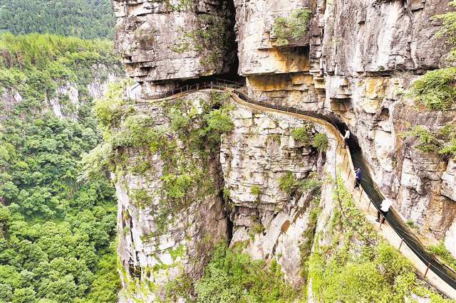 “不要往下面看,千万注意脚下的路。”听当地向导这么说,记者禁不住探头往下一瞥,又迅疾收回目光——视线终端约200米深的谷底如同一条细线,给人以即将坠落深渊的恐惧。