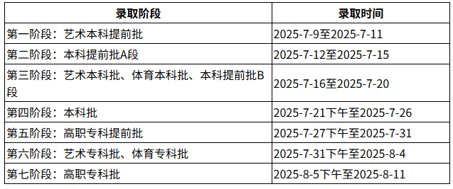 各类别各批次录取进程安排如下: