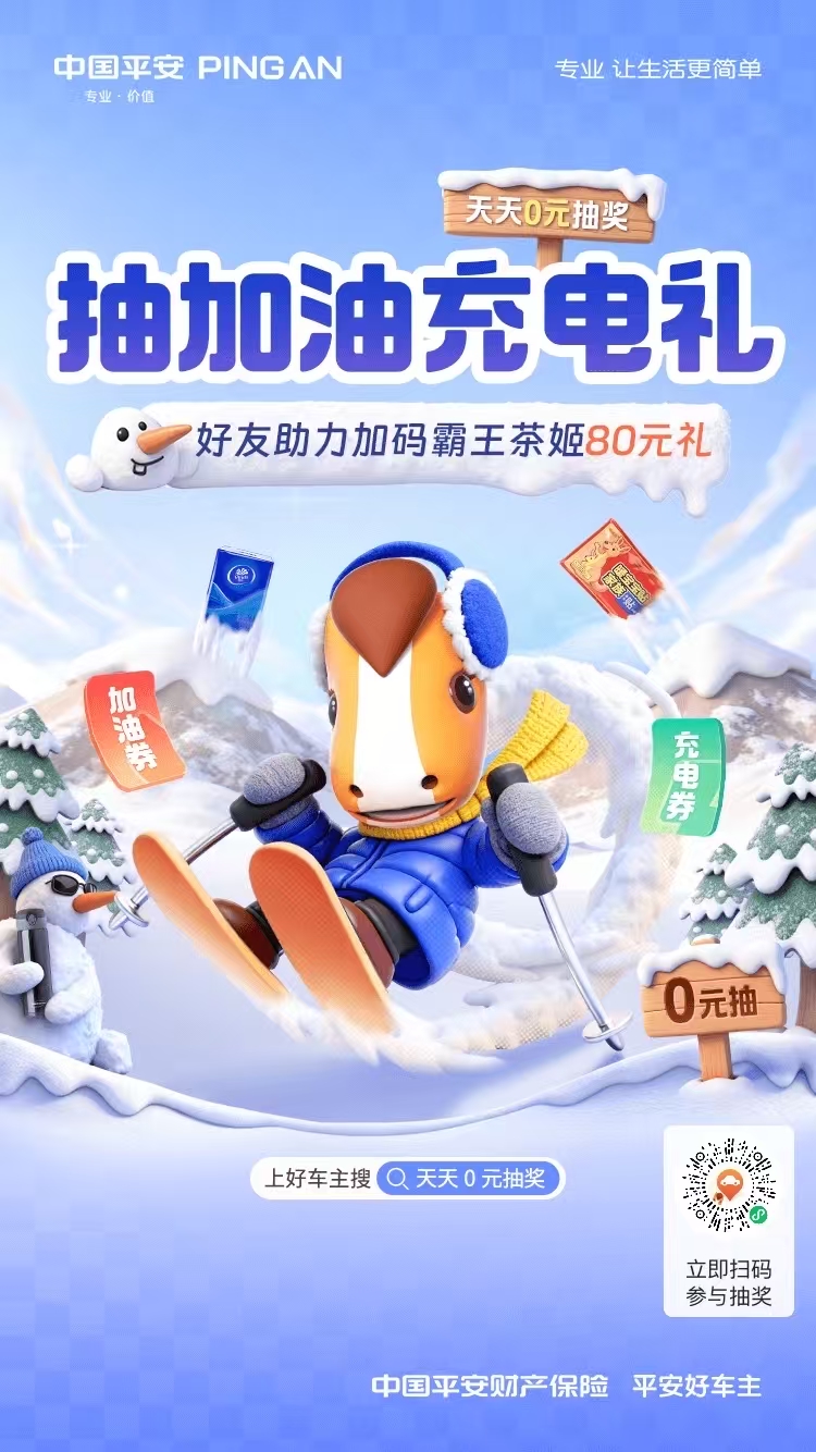 中国平安|天天0元抽奖,抽加油充电礼,好友助力加码霸王茶姬80元礼
